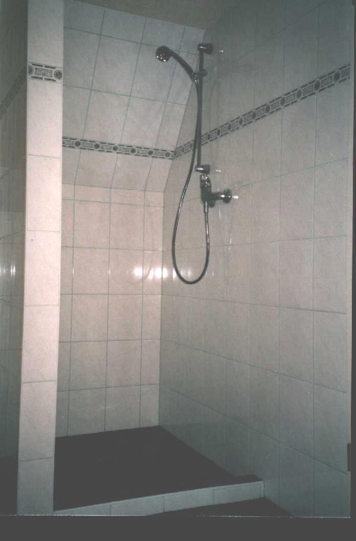 Für diesen Raum waren mehrere Arbeiten notwendig. (Trockenbau, Fliesenverlegung, Putzarbeiten sowie Treppen-, Fenster- und